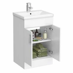 Toreno Basin Unit – 600mm Modern High Gloss White With Mid Edged Basin