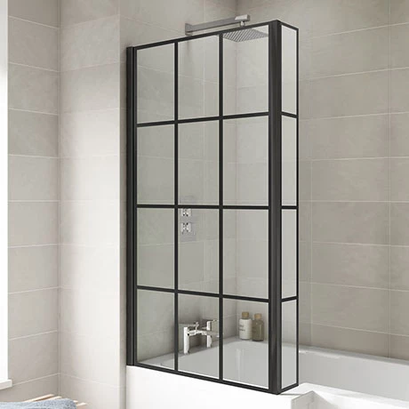 Utilise space in your bathroom and create a showering space within your bath. Designed for use with L-shape baths, this stunning contemporary Toreno bath screen is made of 6mm toughened safety glass and features a matt black frame effect and fixed return screen. The bath screen is reversible in order to perfectly fit your needs.